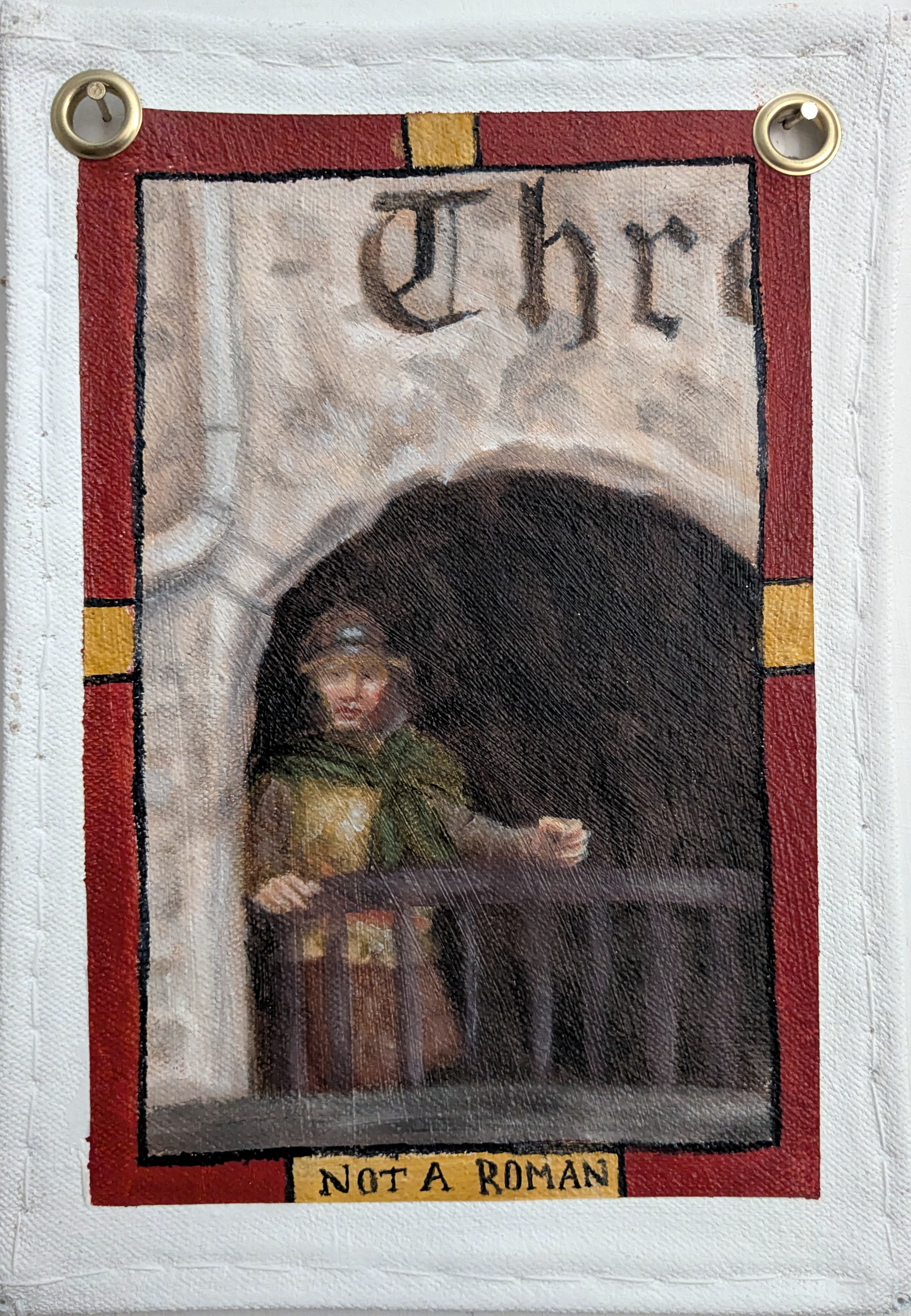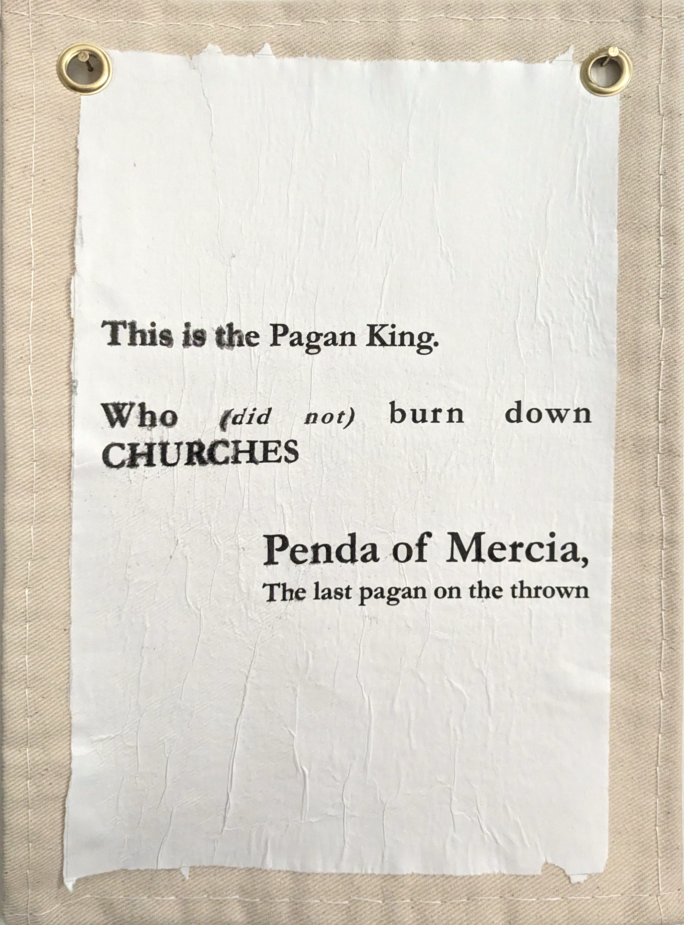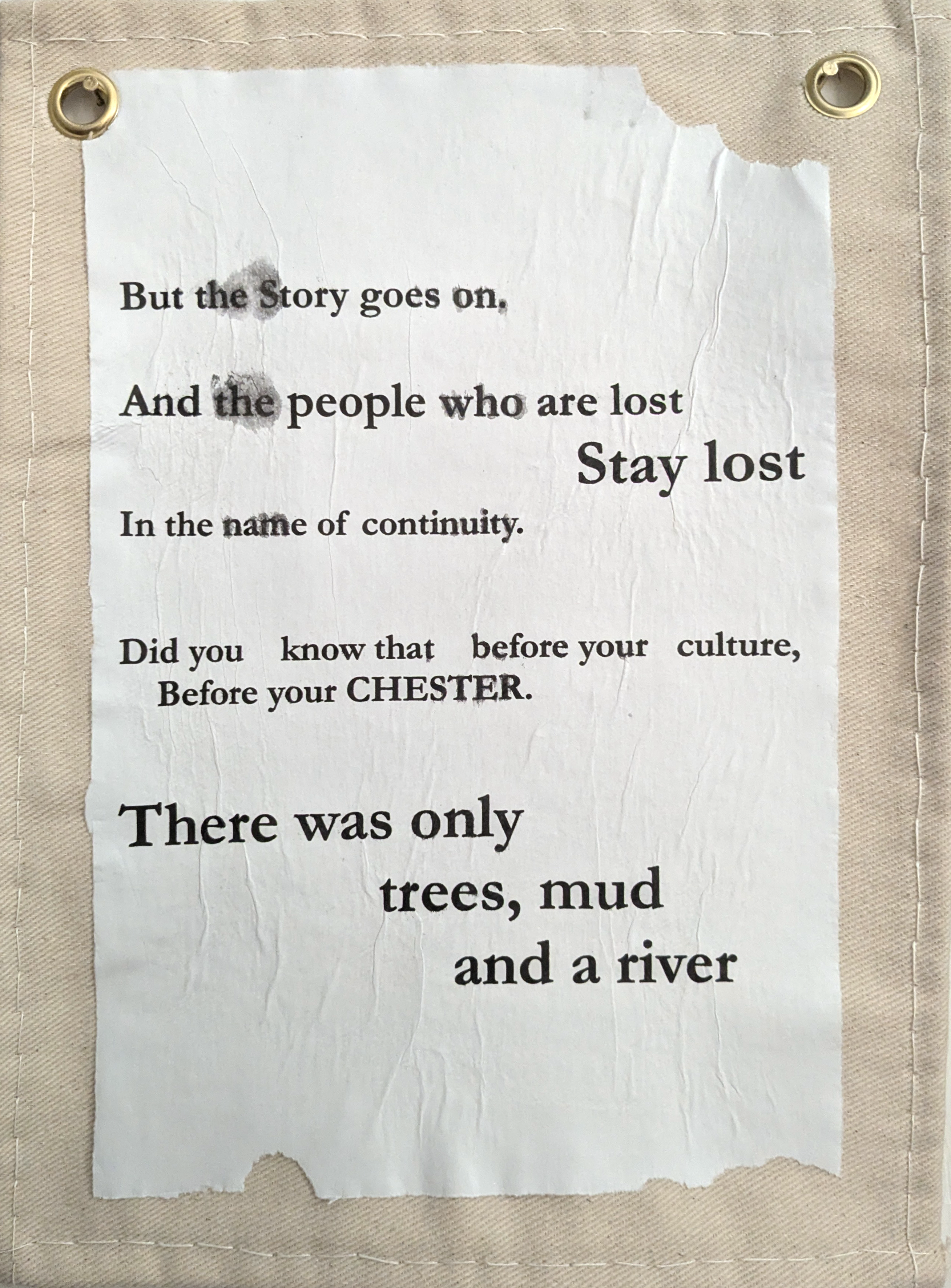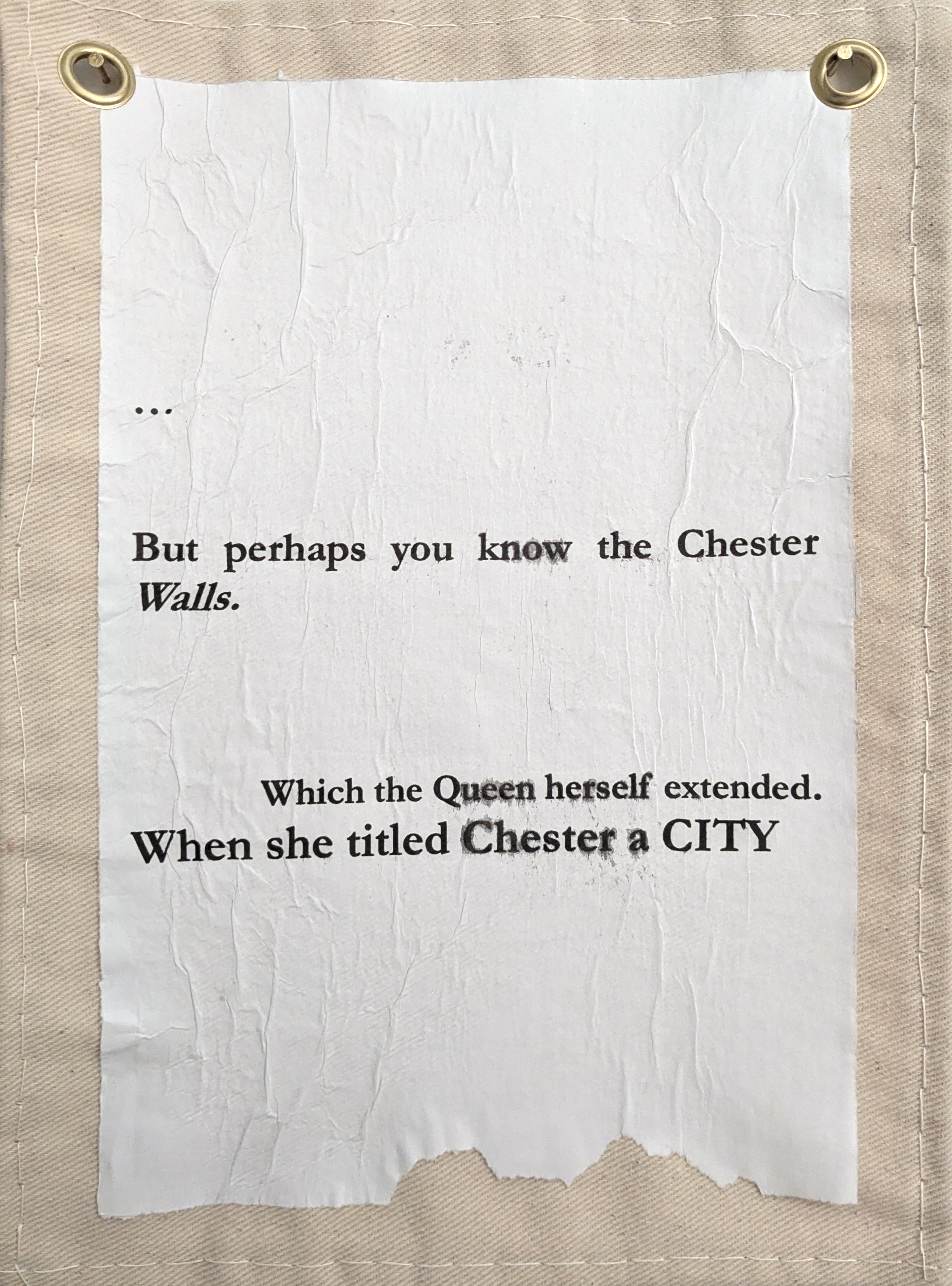 Bunting like Paintings and Decoupaged text depicting a history of Chester separate from the Roman narrative