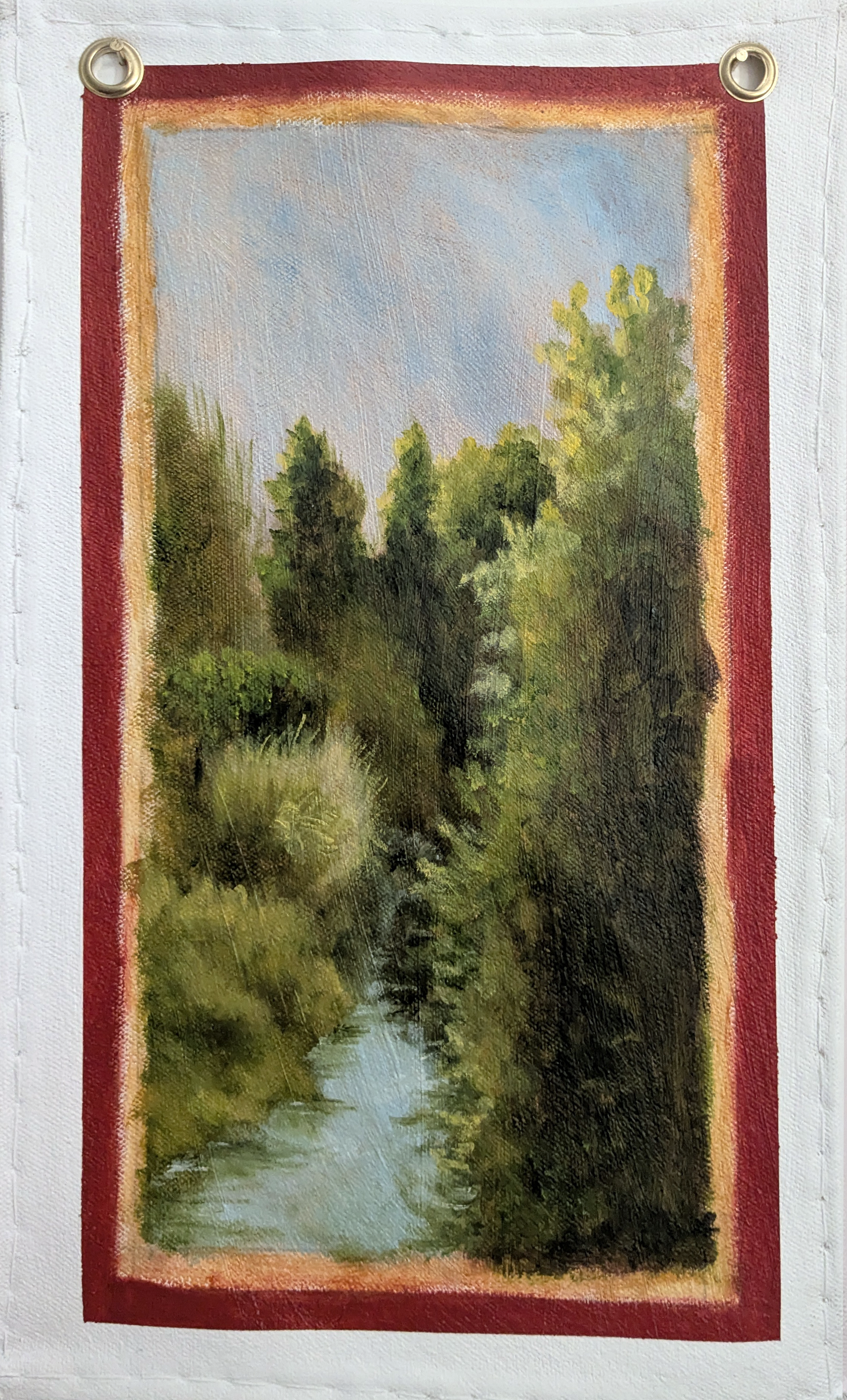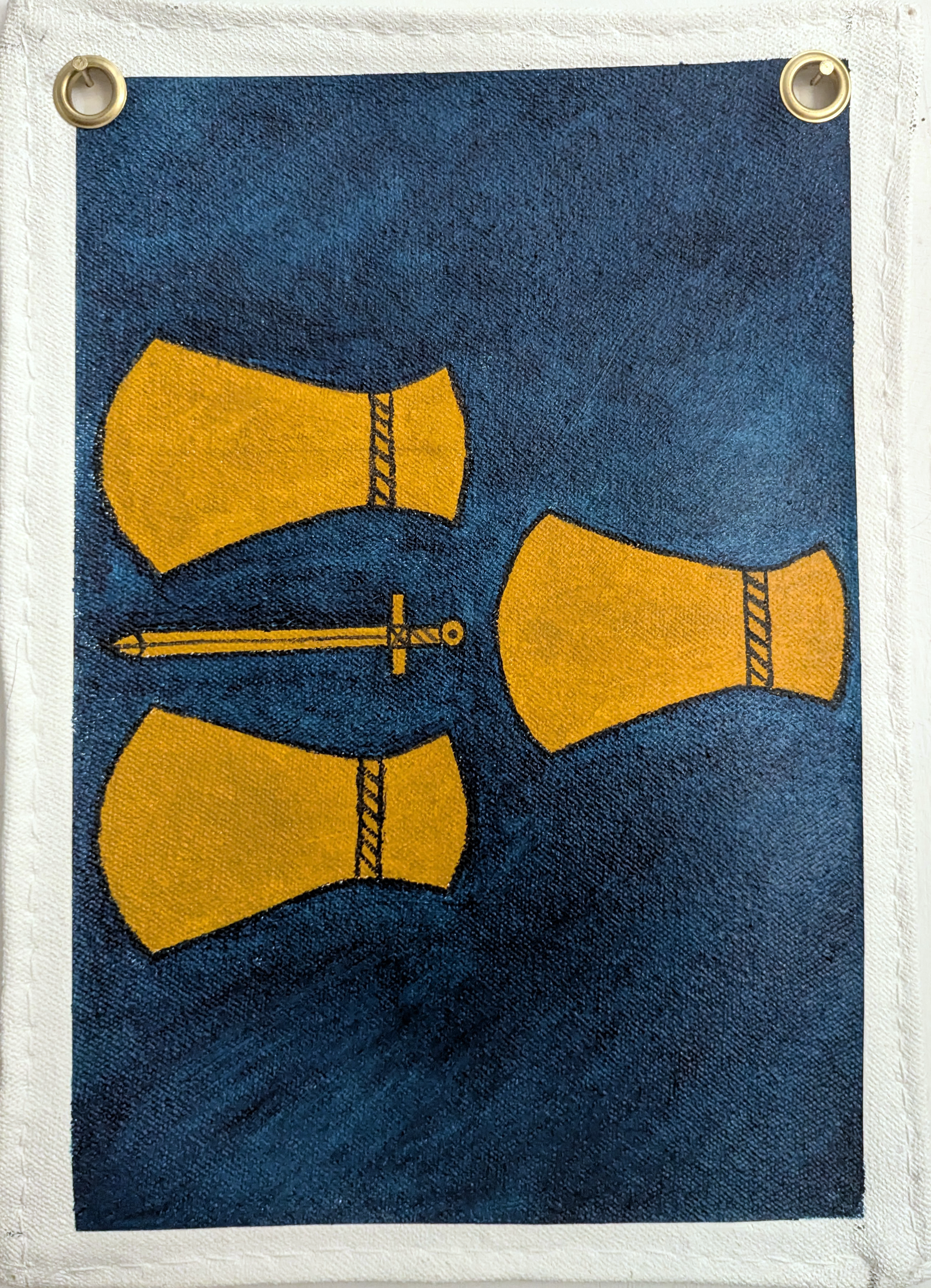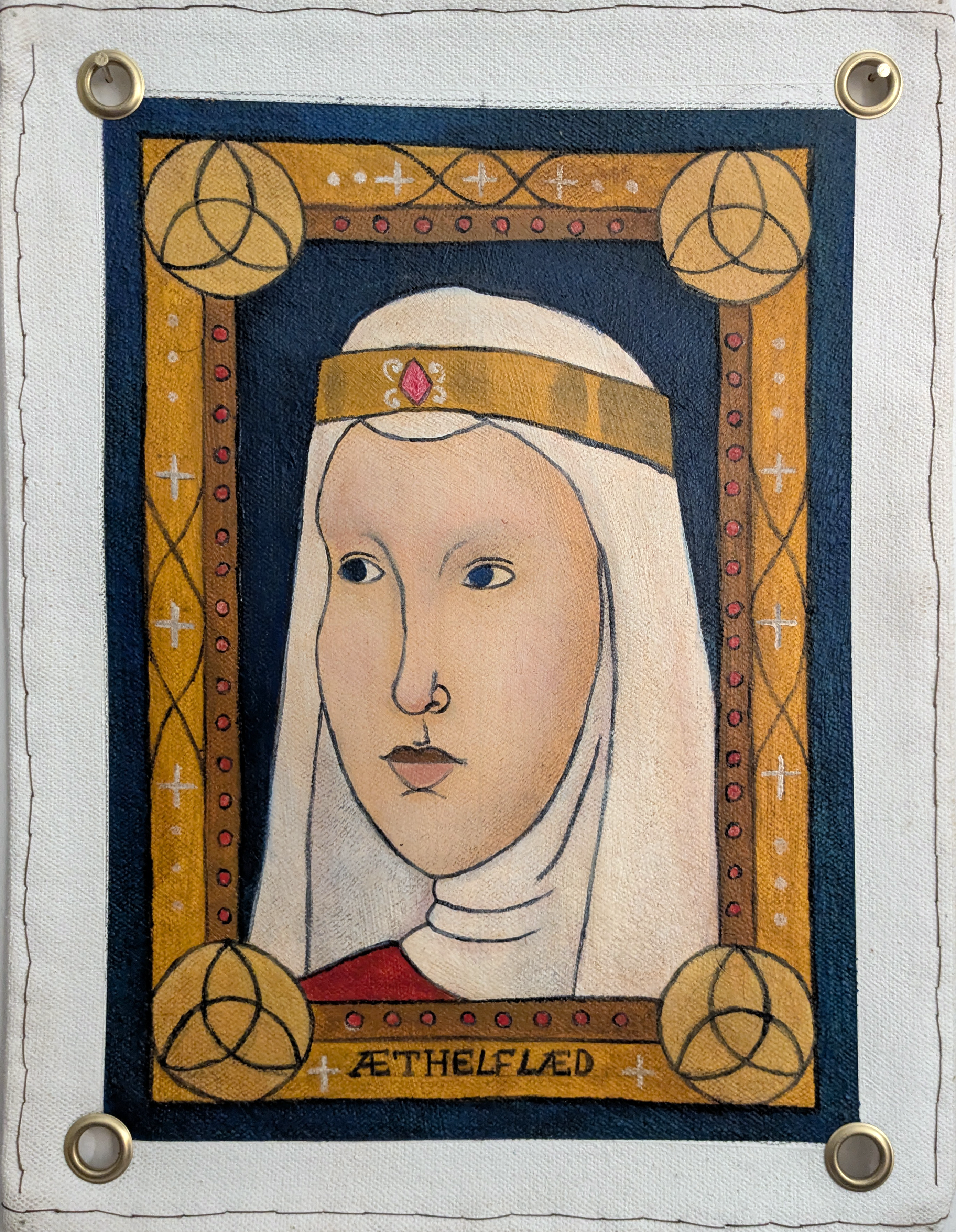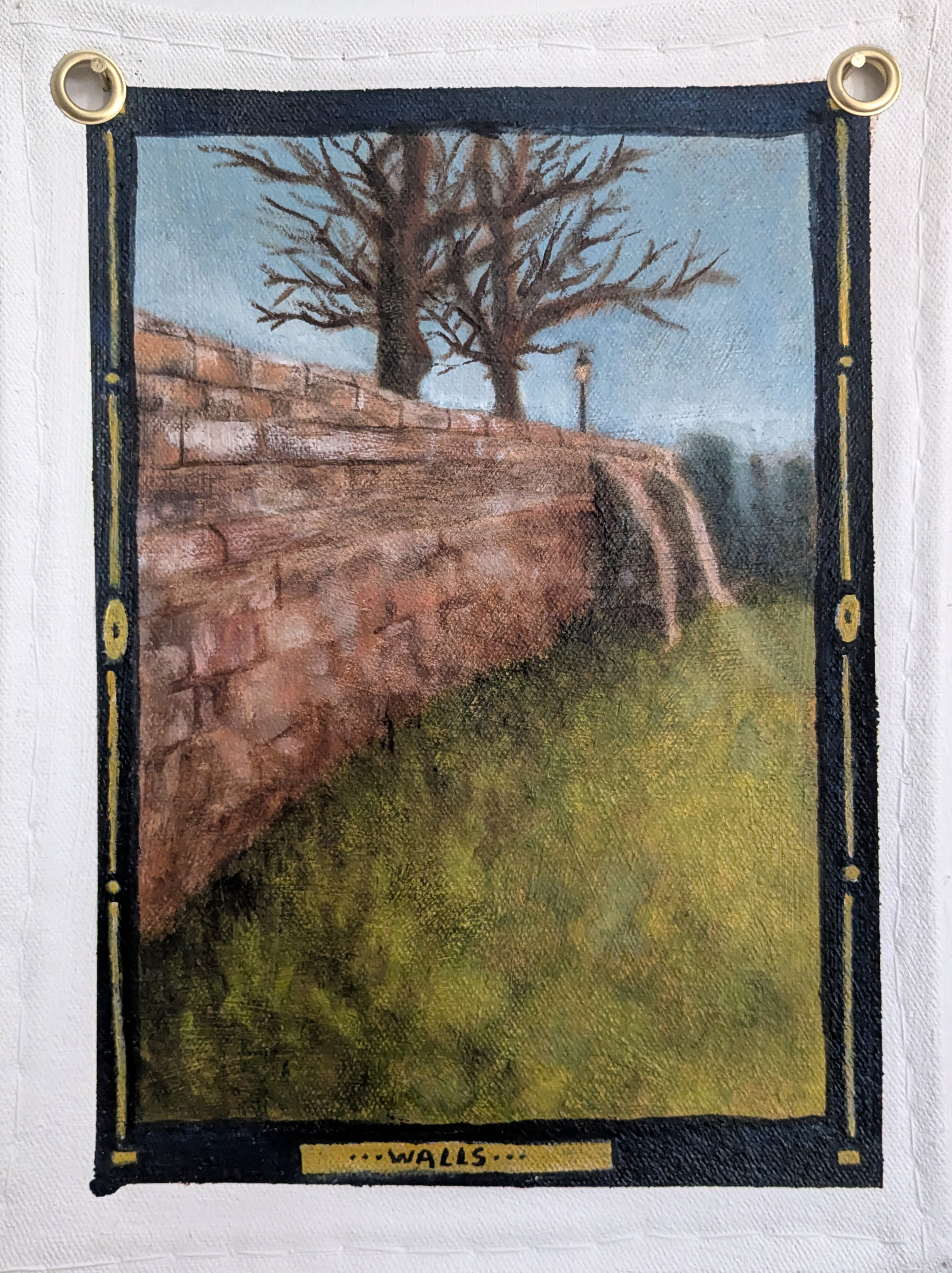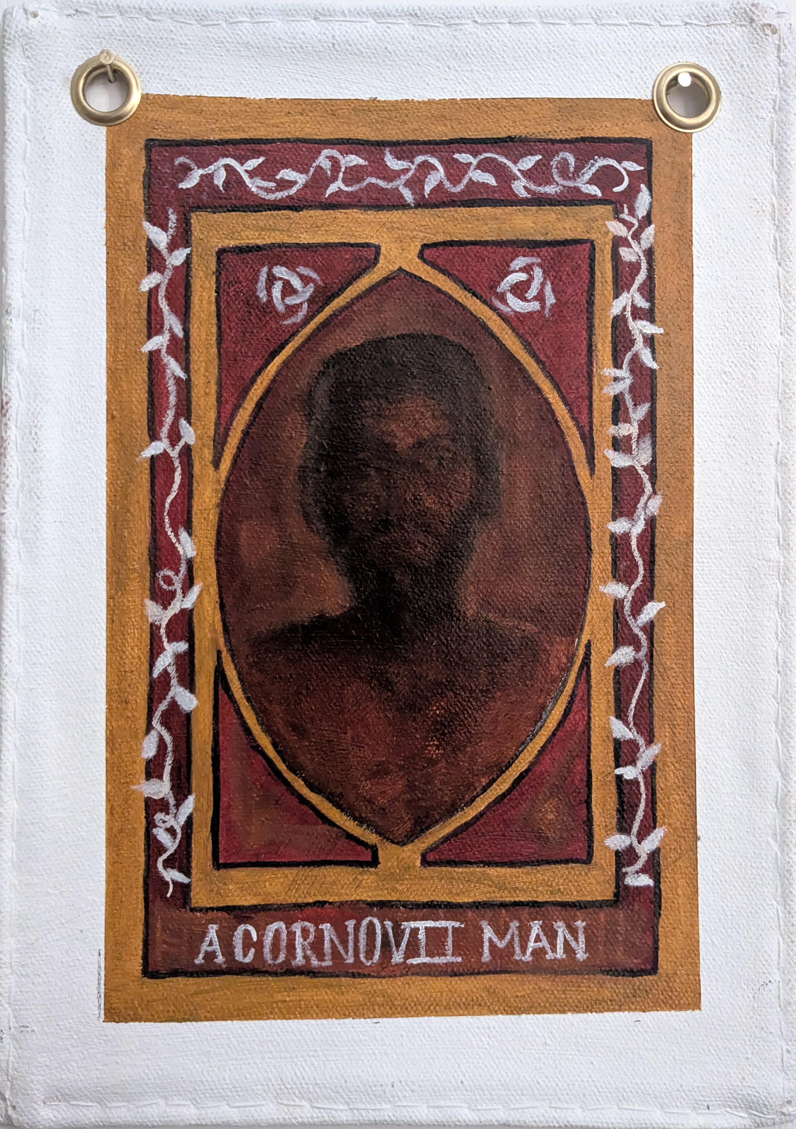 Bunting like Paintings and Decoupaged text depicting a history of Chester separate from the Roman narrative